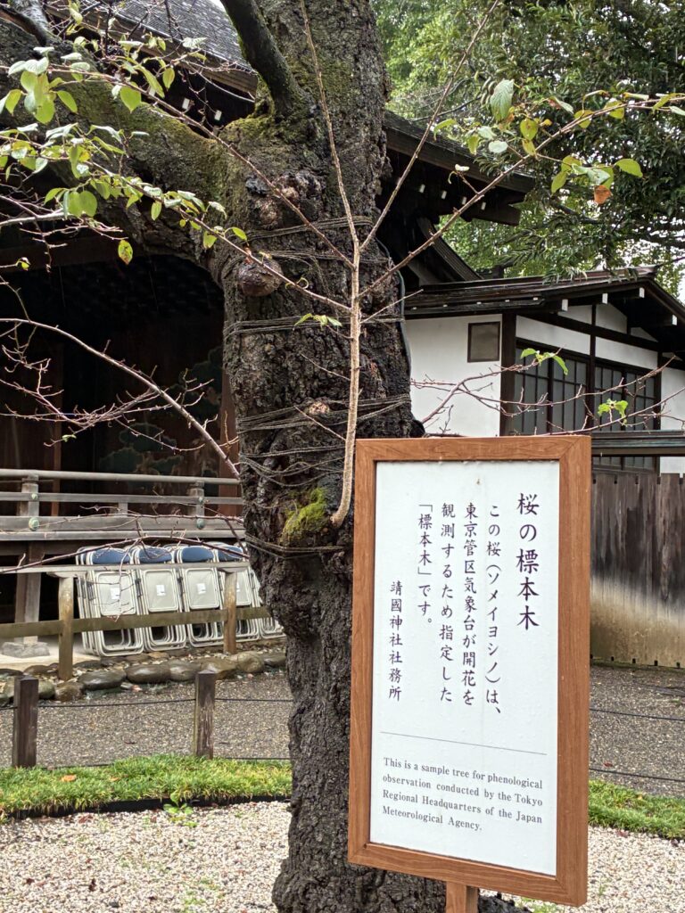その敷地内には、これまた、テレビの天気予報でよく見る、桜の標本木(桜の開花宣言に使う)があり、なるほど、これかーと思いました。