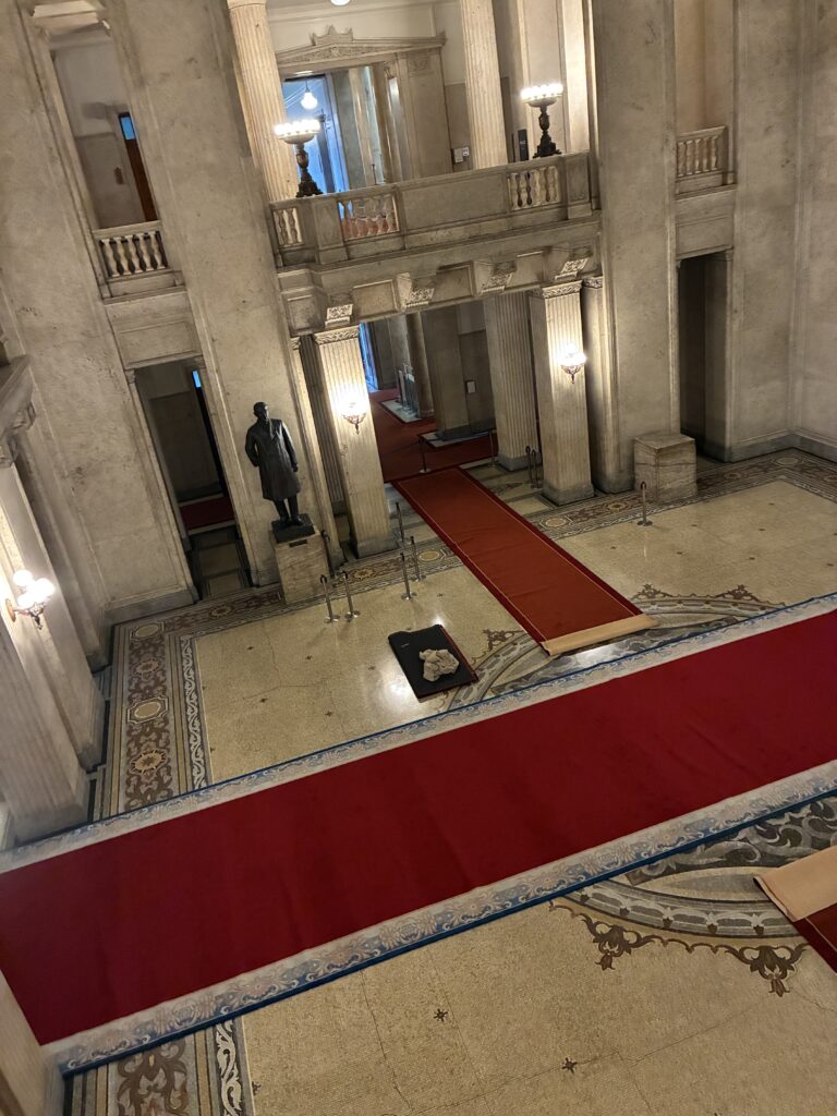 この日は、天皇陛下が来られるらしく、専用の絨毯を念入りに点検している様子も見れて、超ラッキーデーでした。とてもゴージャスな赤い絨毯でした。